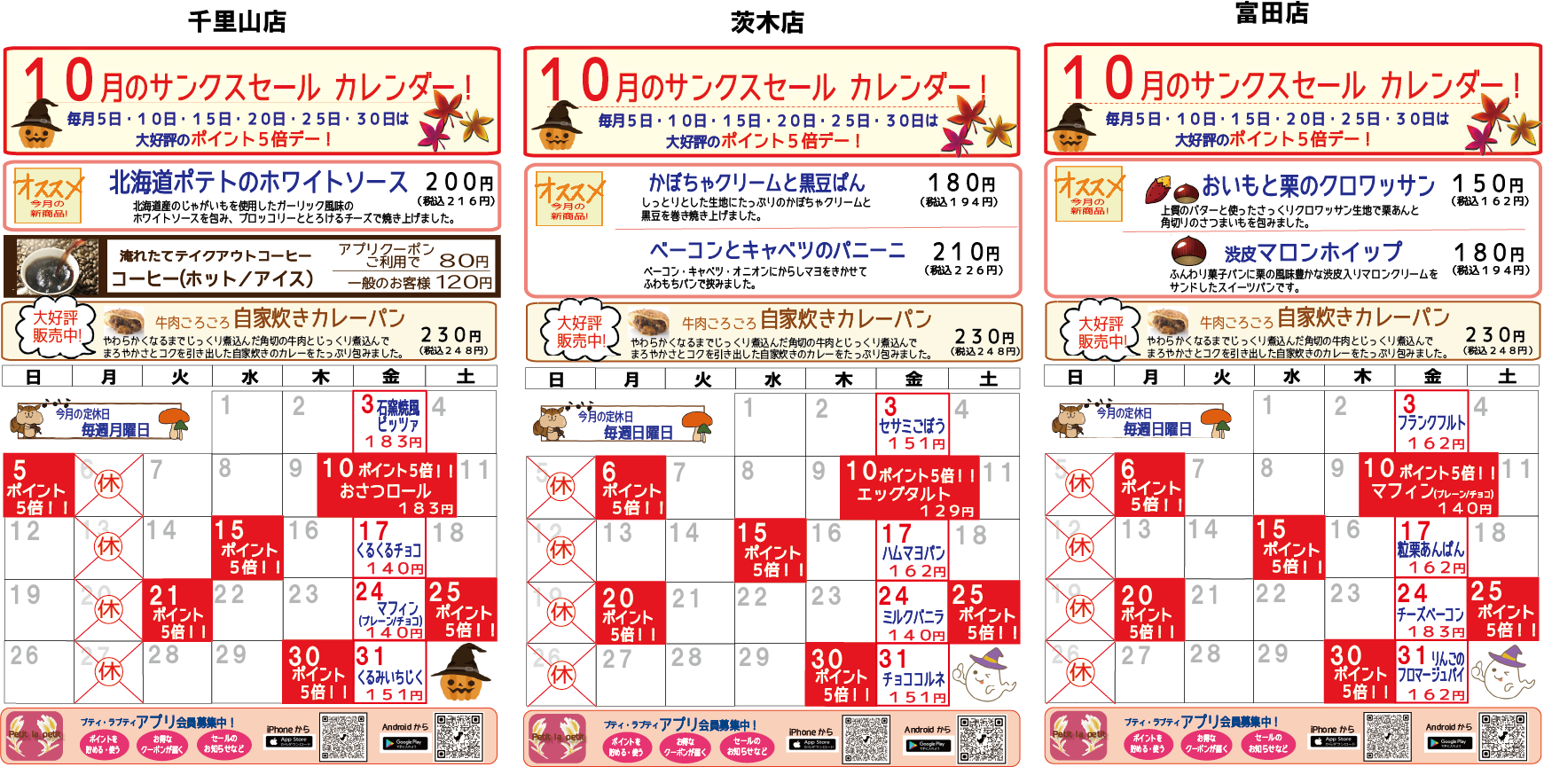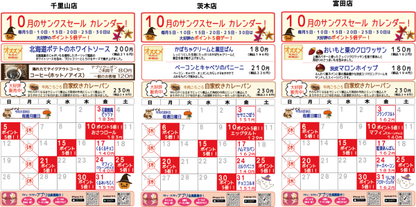 毎月5日、10日、15日、20日、25日、30日はポイント5倍セールです。毎週金曜日は、人気のパンがお買い得です。