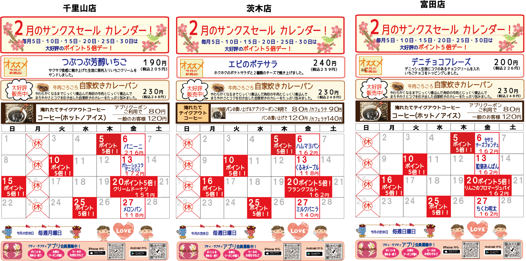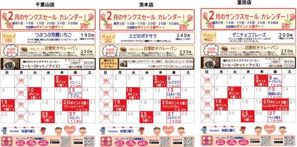 毎月5日、10日、15日、20日、25日、30日はポイント5倍セールです。毎週金曜日は、人気のパンがお買い得です。